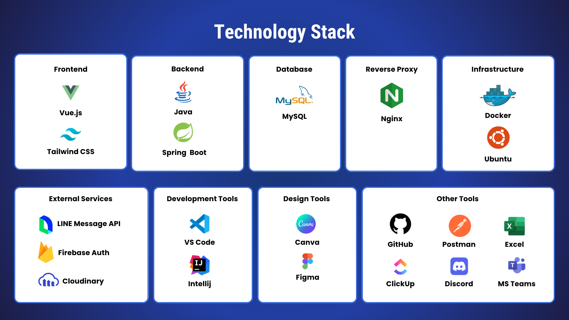 - Frameworks & Libraries: Vue.js 3, Tailwind CSS, Vite, Vue Router, Pinia, Axios, html5-qrcode / ZXing / Quagga2, Firebase, SockJS / Stompjs, jspdf, xlsx(SheetJS), Chart.js