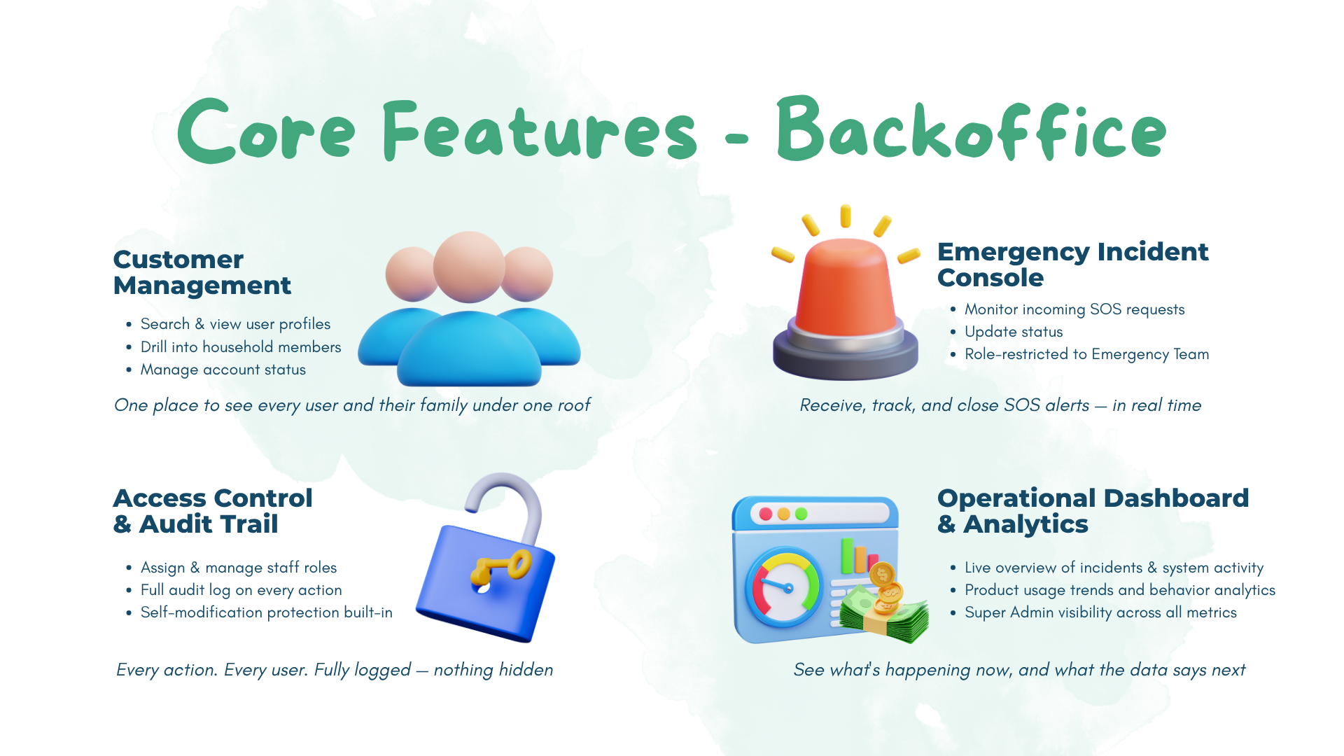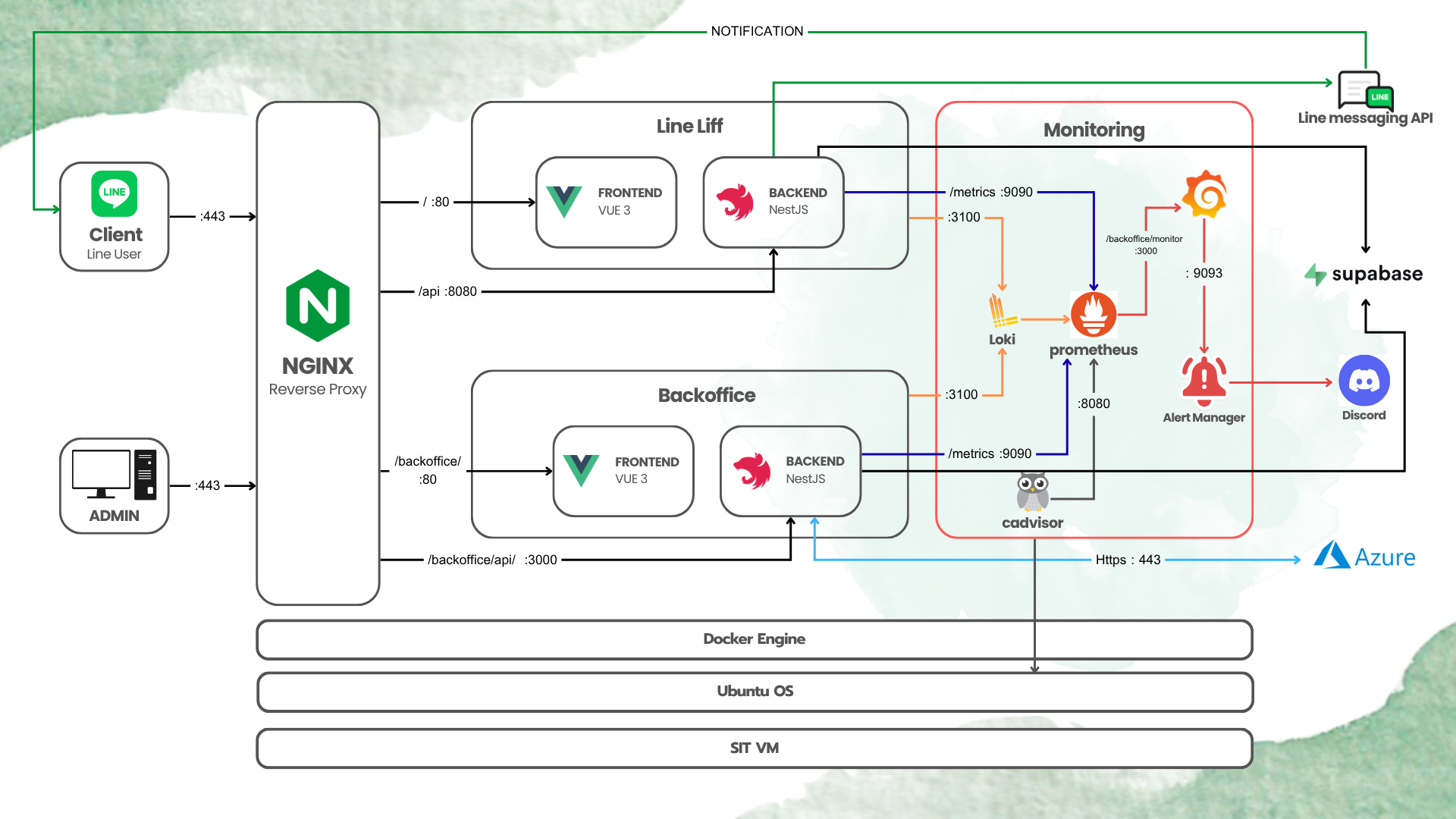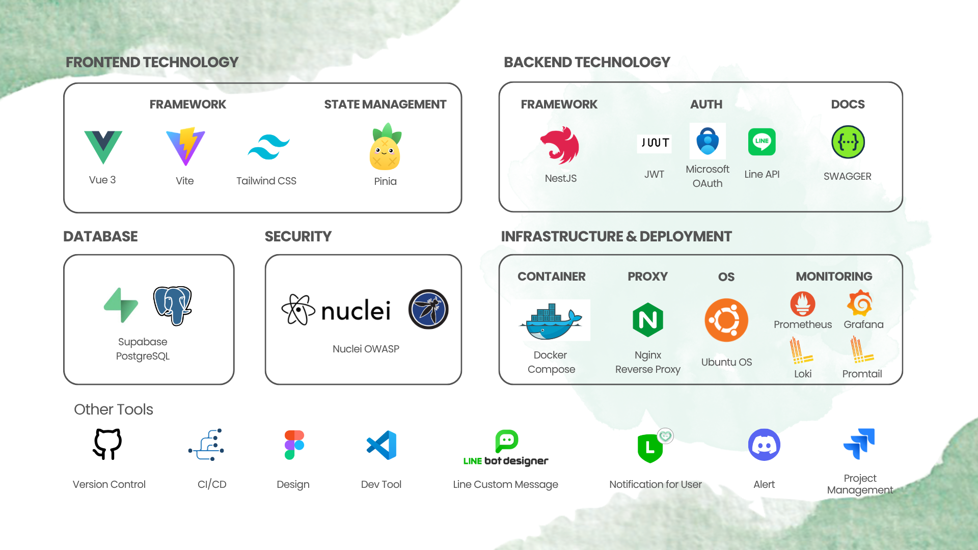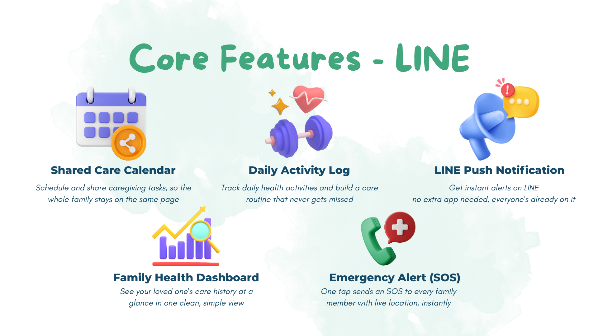 HUANGYAI is developed on the LINE platform to address challenges in collaborative elderly and patient care, where multiple caregivers often face issues such as miscommunication, missed appointments, and scattered information. The system provides a centralized solution for managing schedules, medication, and essential care data, allowing all members to access and update information in real time with role-based notifications to reduce errors. It also supports a backoffice system for administrators to manage data, control access permissions, and monitor system usage, ensuring security and operational efficiency.