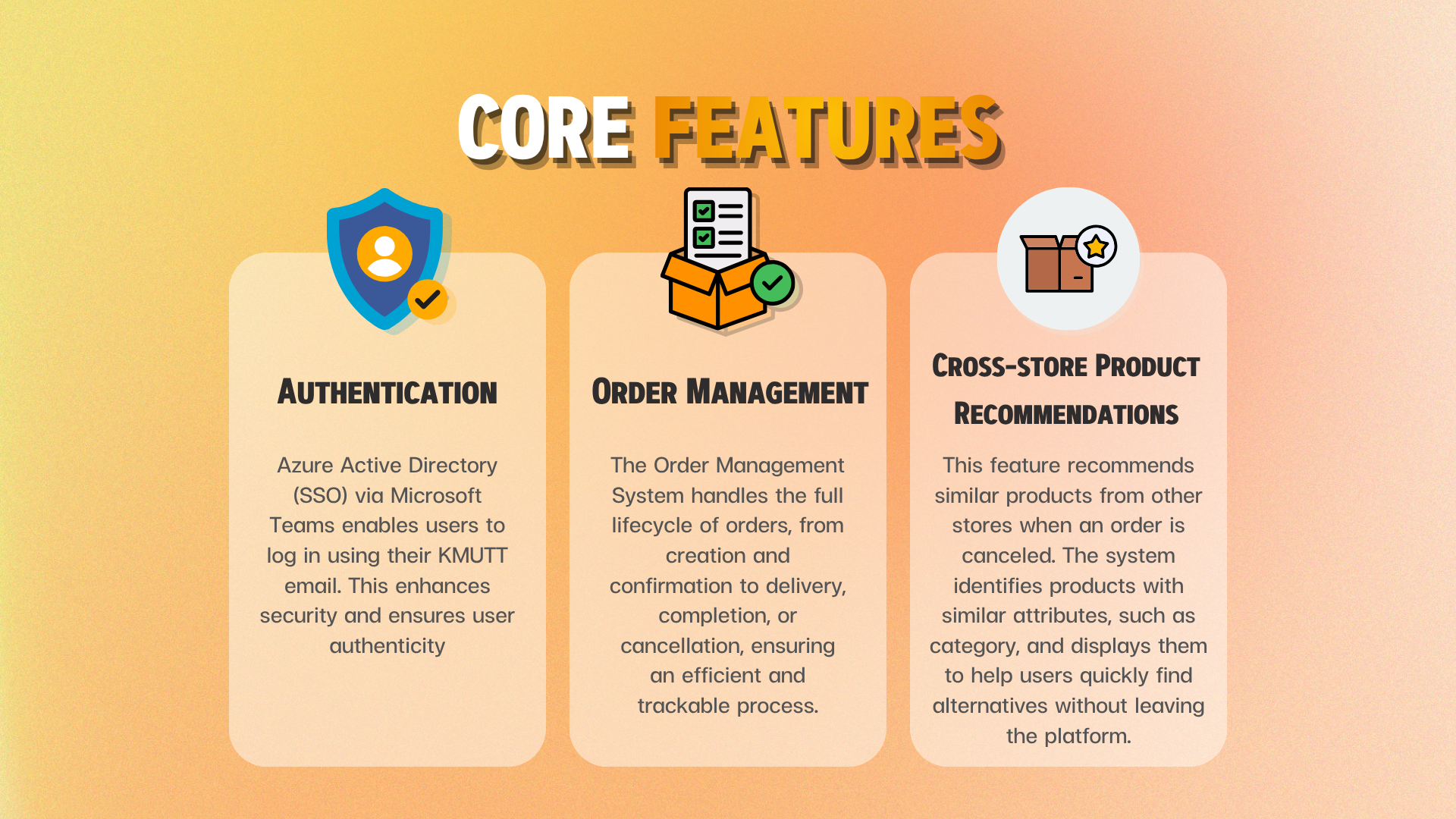 Students at KMUTT frequently utilize general communication platforms for commerce; however, these lack structured transaction support, leading to inefficient product management and order tracking. This study presents KMALL, a centralized web-based marketplace specifically designed for the university community. The platform integrates essential features, including secure authentication, streamlined order management, and real-time communication. By providing a structured ecosystem, KMALL enhances organizational efficiency and fosters entrepreneurial development among students.