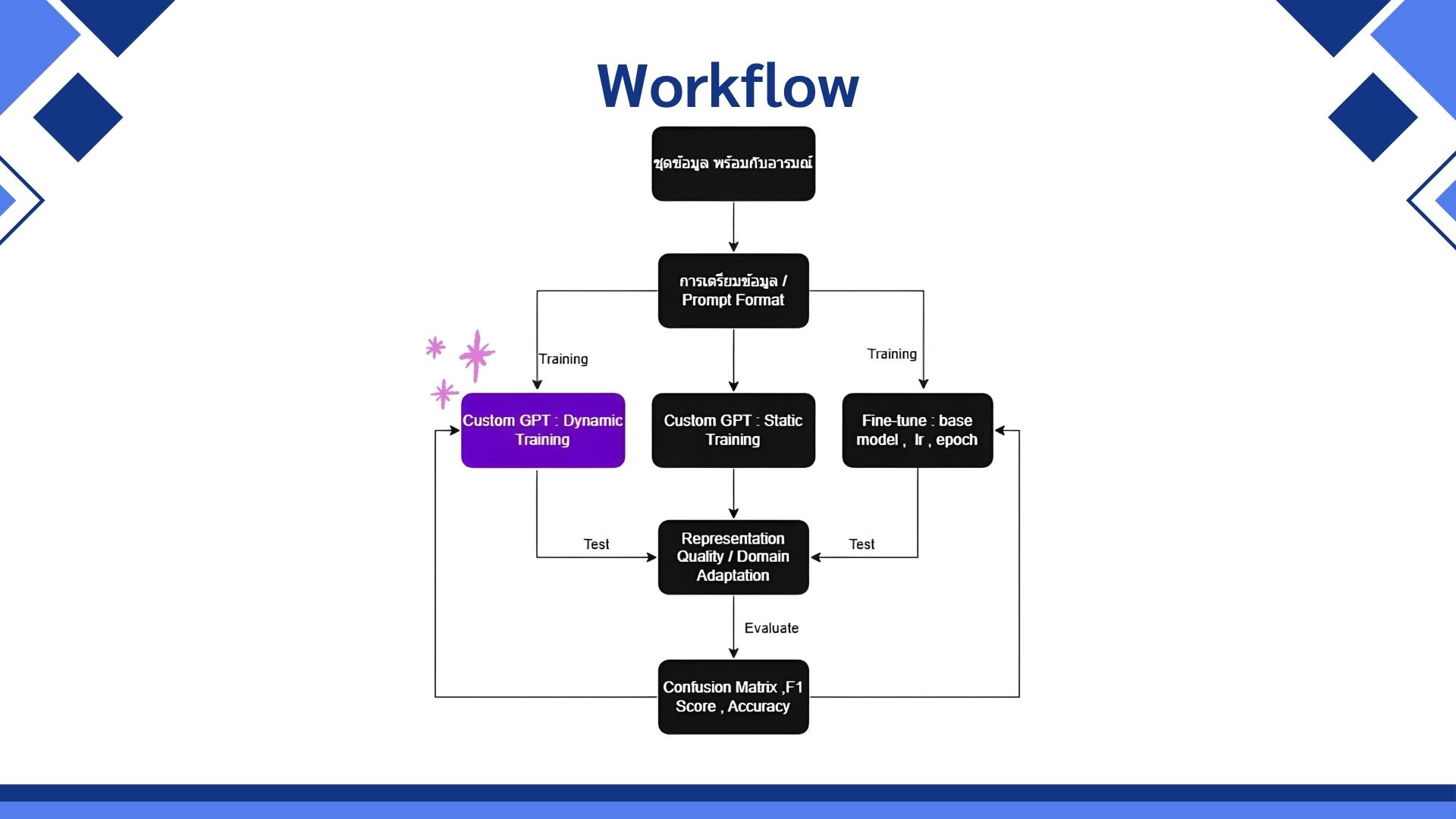 This research aims to develop an artificial intelligence system for recognizing characters’ emotions from narrative television drama scripts in textual form. Emotion recognition from text is a challenging task because textual communication lacks paralinguistic cues such as tone of voice, facial expressions, and body language, which can lead to ambiguity and misinterpretation. Television drama scripts are employed as the primary dataset due to their narrative structure and conversational style, which closely resemble real-life textual communication. The research process involves collecting and curating drama script การเรียน/ ทัศนคติ/ การ ปรับตัว datasets, annotating emotional labels, and developing emotion recognition models using Custom GPT and finetuning approaches on large language models that support the Thai language. The system’s performance is evaluated using statistical metrics such as confusion matrix and F1- score. The expected outcome is an AI system capable of accurately recognizing characters’ emotions in drama scripts in a manner consistent with human interpretation. This system can be further applied to actor training, script analysis, and the development of text-based emotion analysis tools in other related contexts.